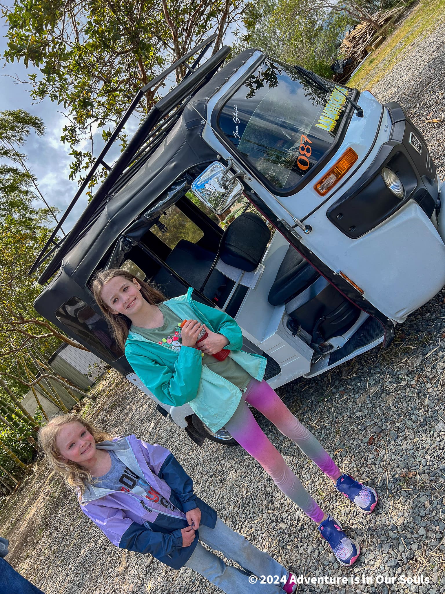 Our first full day in Guatapé was packed with color, charm, and adventure! We started by hopping into brightly decorated tuk tuks, the local motorcycle taxis. The open-air ride was thrilling, and the girls squealed with delight as we zipped through winding streets.