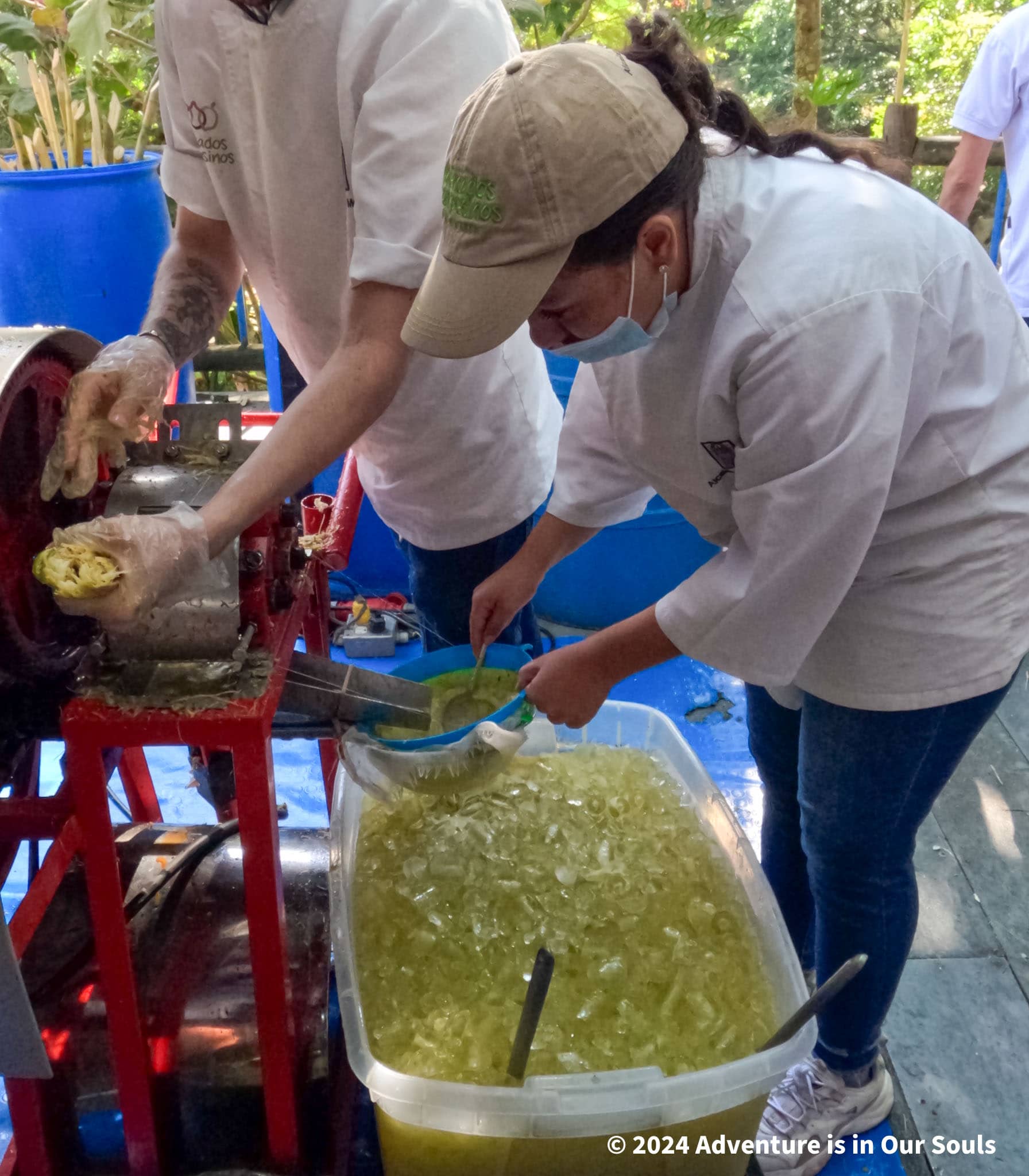 We dressed in traditional farming outfits, complete with ponchos and hats. Buttercup loved being chosen as the model to demonstrate each piece. We learned how coffee beans are picked, washed, and roasted. At one point, we even tried a drink made from the mucilage of the coffee cherry.
