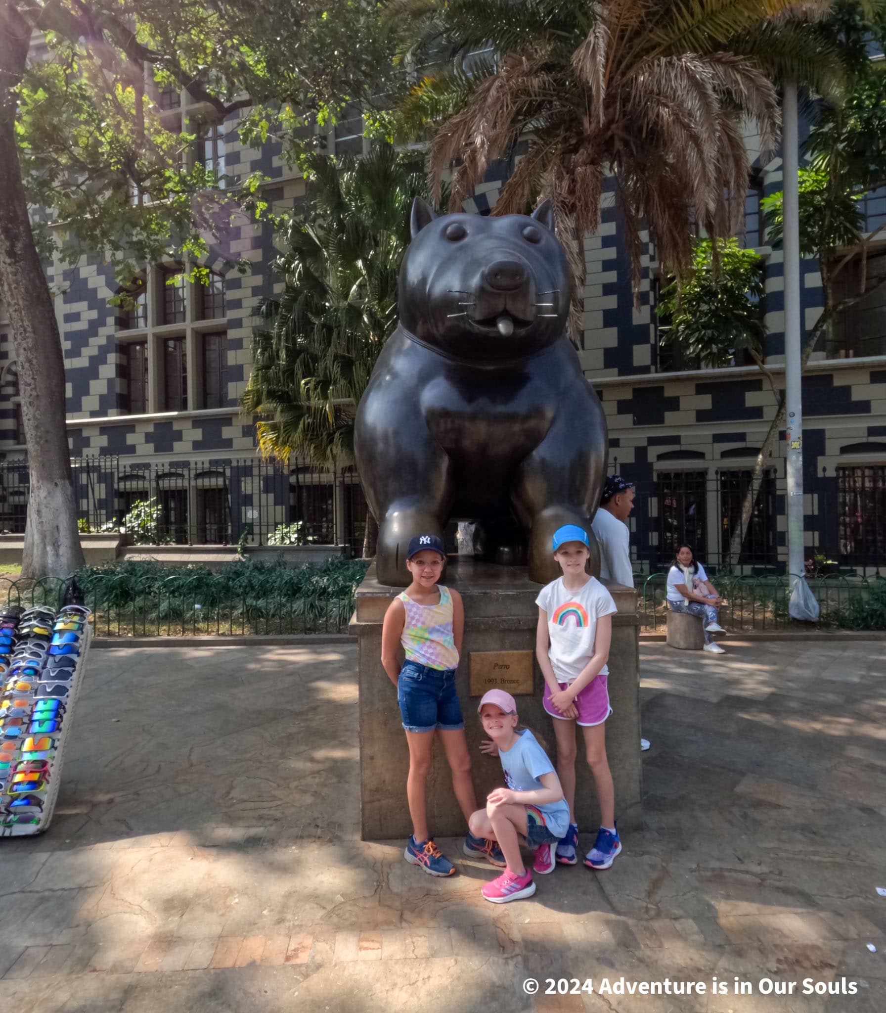 Next, we visited Plaza Botero, home to 23 massive sculptures created by Fernando Botero. His whimsical, oversized figures brought so much laughter, especially for the girls. The striking Rafael Uribe Palace of Culture in the background was just as impressive.