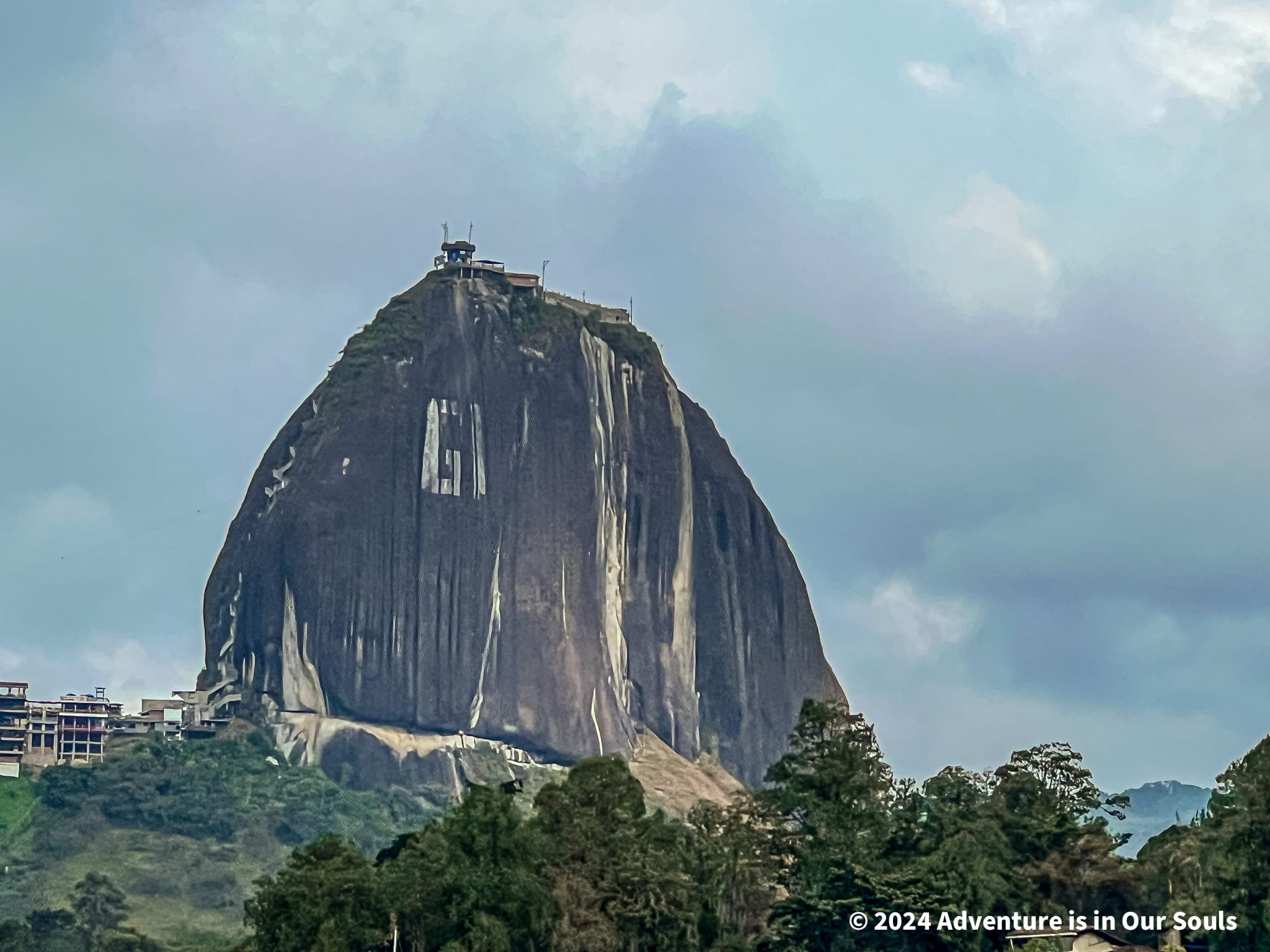 Our sixth day was reserved for one of Colombia’s most iconic sights, El Peñón! Known both as La Piedra del Peñol and El Peñón de Guatapé, this massive granite rock towers over the landscape. At over 650 feet tall, it is impossible to miss. The towns of Guatapé and El Peñol have long debated ownership of the rock, even attempting to paint their town’s name across its face. Today, it simply stands as a proud landmark.
