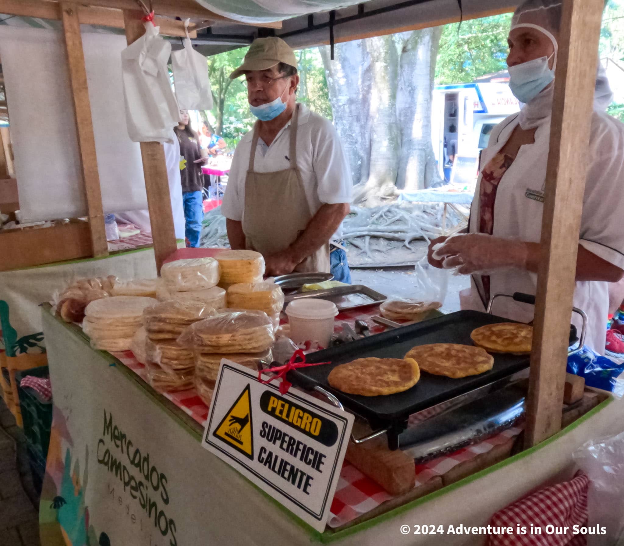 The local markets overflowed with flavor and energy! We wandered from stall to stall, sampling delicious street food that filled the air with irresistible aromas. My favorite quickly became the arepa de queso, a warm, cheesy corn cake griddled to perfection, then drizzled with sweetened milk and topped with soft quesito. Every bite was heavenly! To wash it down, we tried aguapanela con limón, a refreshing sugarcane and lime drink that was both sweet and tangy.