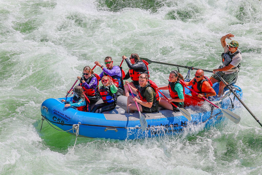 The next morning, we swapped dusty streets for roaring rapids. White water rafting on the lower Snake River is one of the most thrilling Jackson Hole activities. The river carved stunning canyons over millions of years, and today seasonal snowmelt drives powerful currents that create exhilarating rapids.