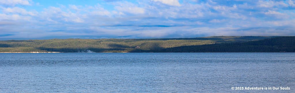 As we continued south along the Grand Loop, we arrived at Lake Yellowstone, where we would spend our final night in the park. The lake covers more than 136 square miles at an elevation of nearly 8,000 feet, making it one of the largest high-elevation lakes in North America. It was formed by past volcanic activity, and today it plays a critical role in the park’s ecosystem, supporting fish, birds, and geothermal features along its edges.
