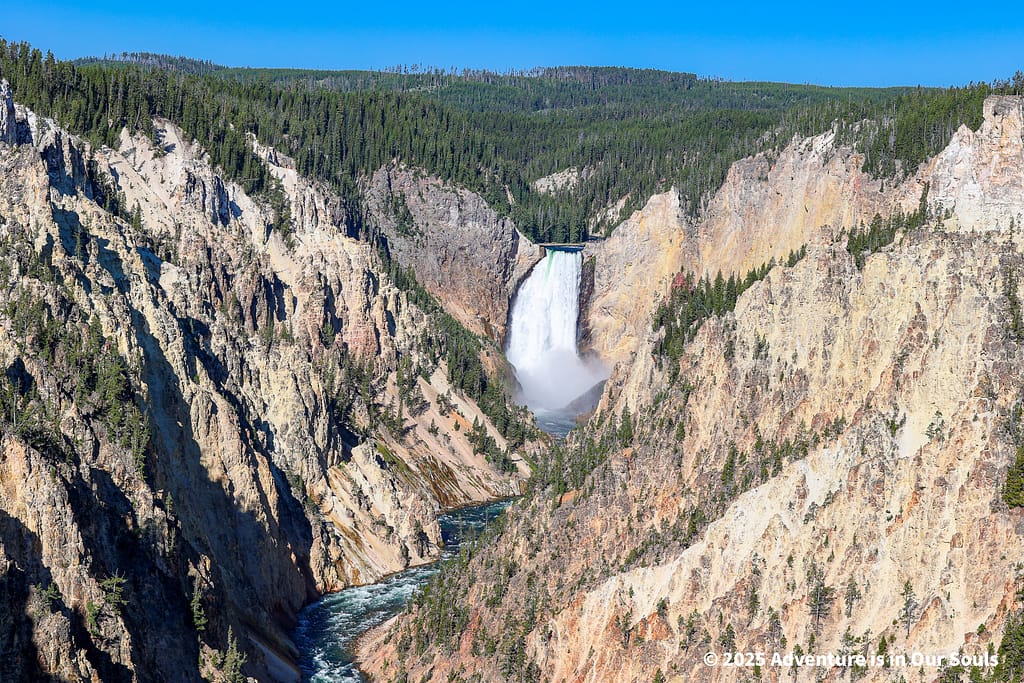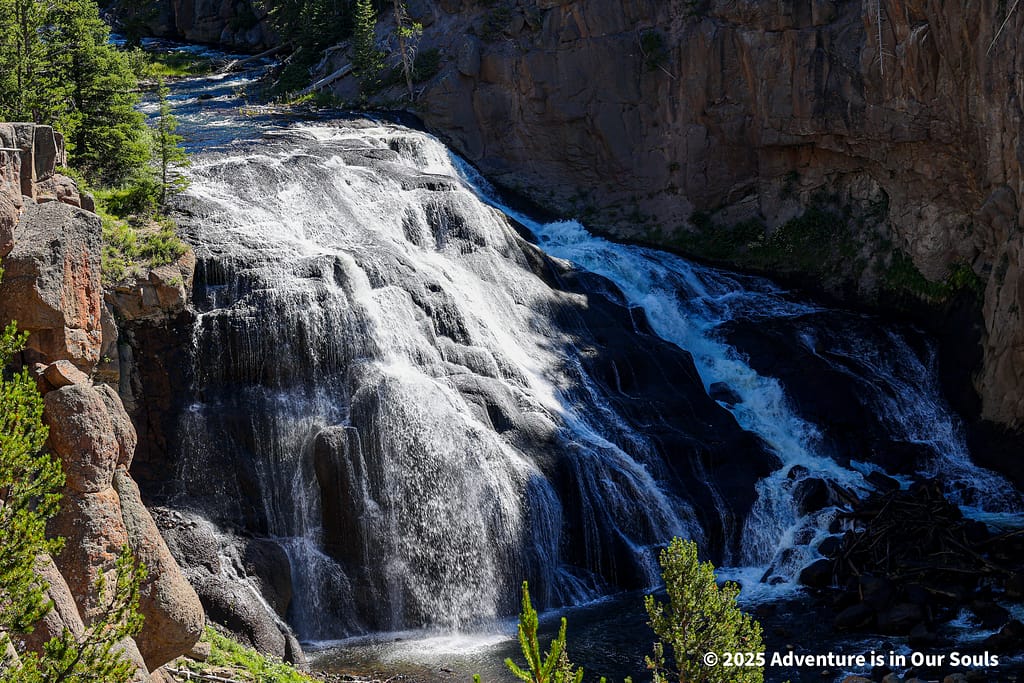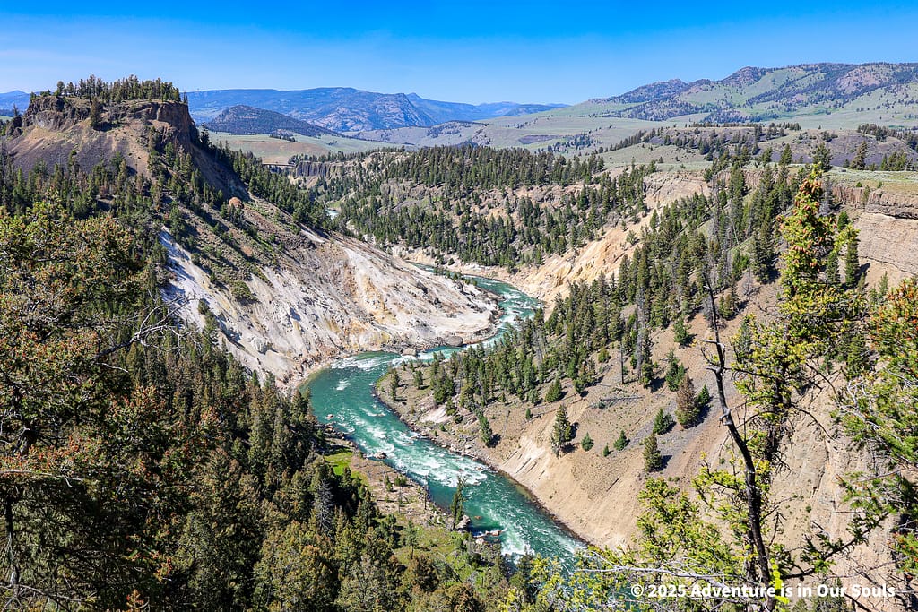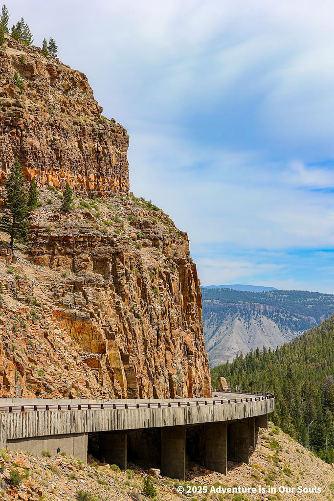 Continuing south along the Grand Loop, the landscape shifted from the colorful mineral terraces of Mammoth to dramatic canyons, rugged cliffs, and forested slopes.