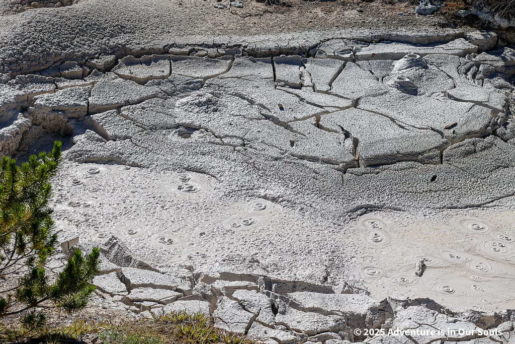 Our next stop was the Fountain Paint Pots Area, one of Yellowstone’s most fascinating geothermal zones, located in the Lower Geyser Basin. This area sits above an underground volcanic system, where superheated water interacts with gases and minerals to create a mix of hot springs, geysers, fumaroles, and mud pots all within a short boardwalk loop. Families can safely explore while seeing dozens of features in action, making it a perfect stop for kids to witness the park’s geothermal energy up close.