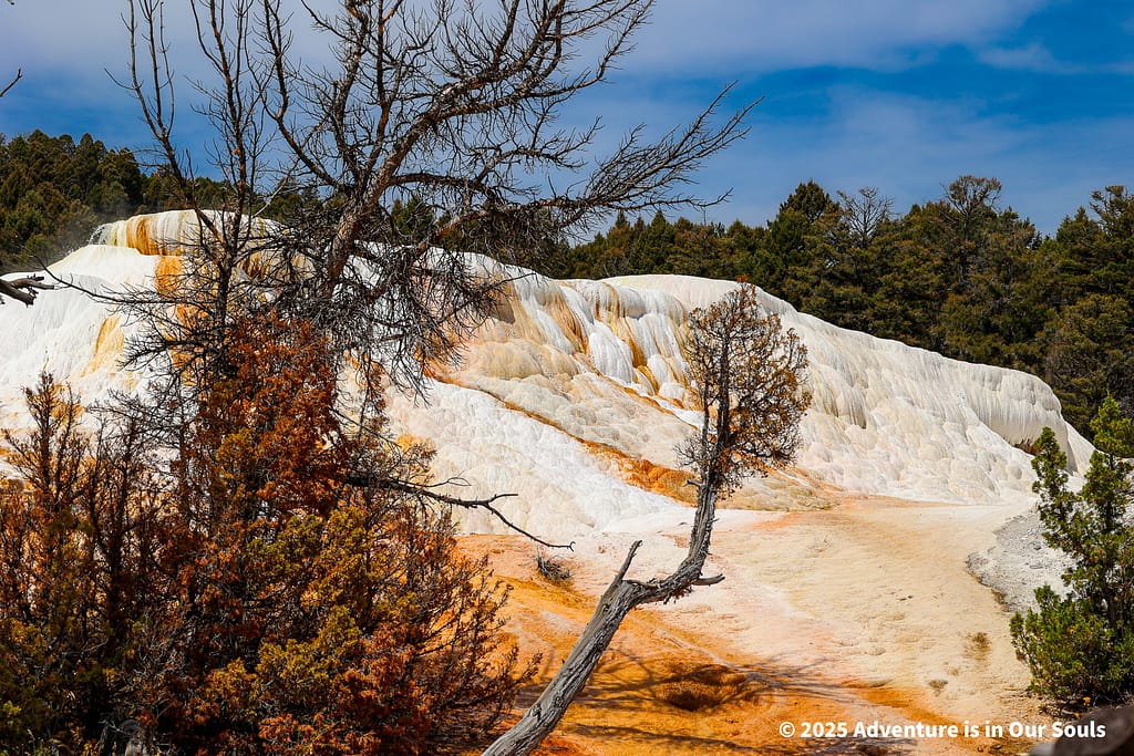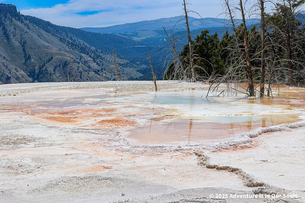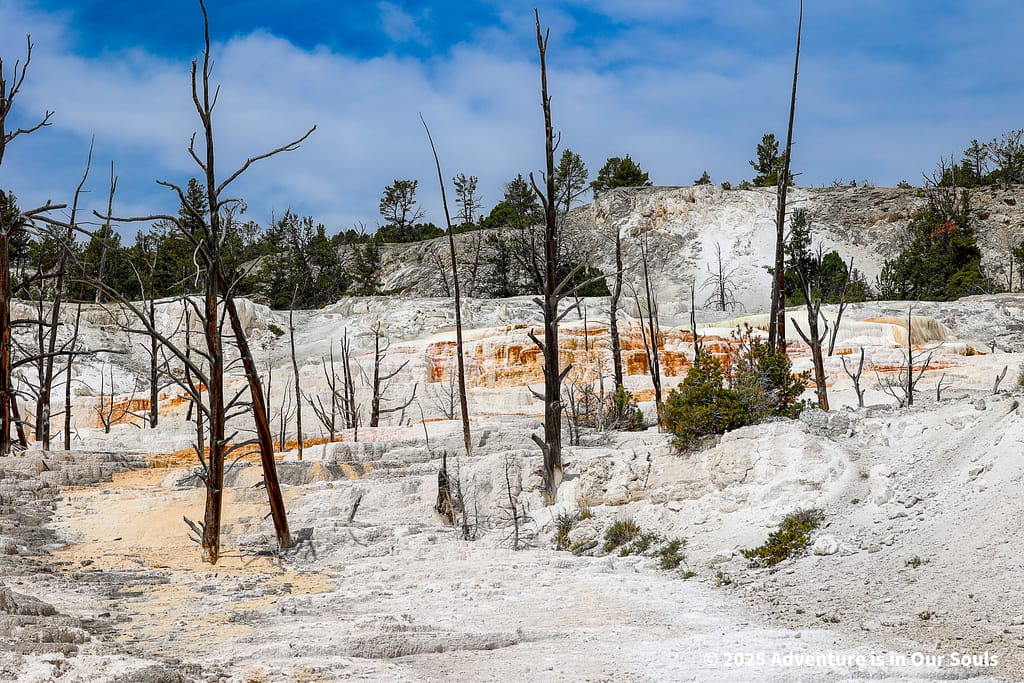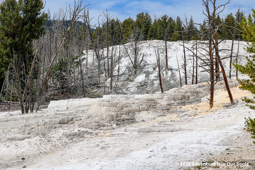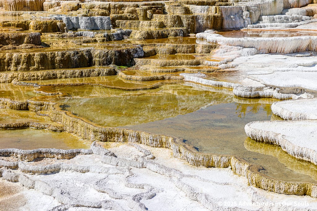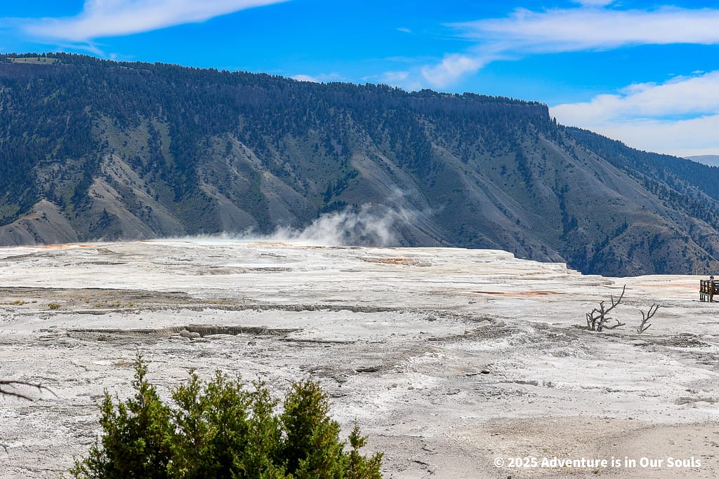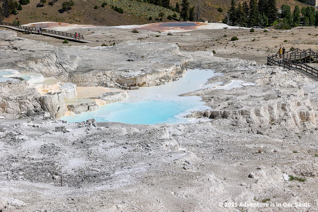 Finally, Angel Terrace lives up to its name with delicate white deposits that spread gracefully across the hillside. The terrace feels almost magical, especially as sunlight glints off the mineral layers.
