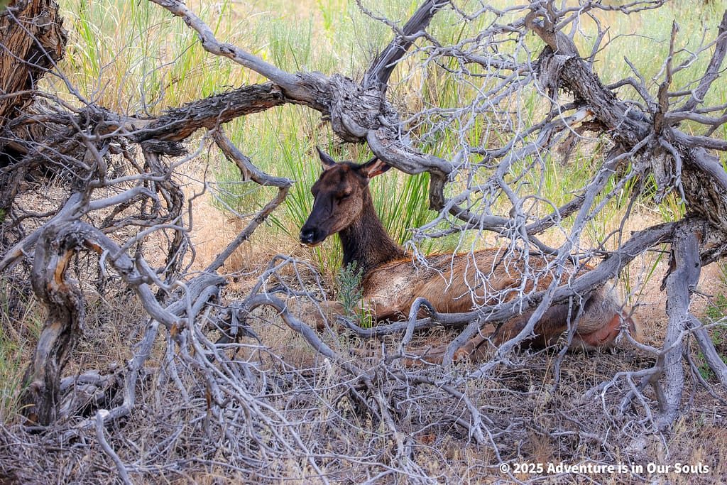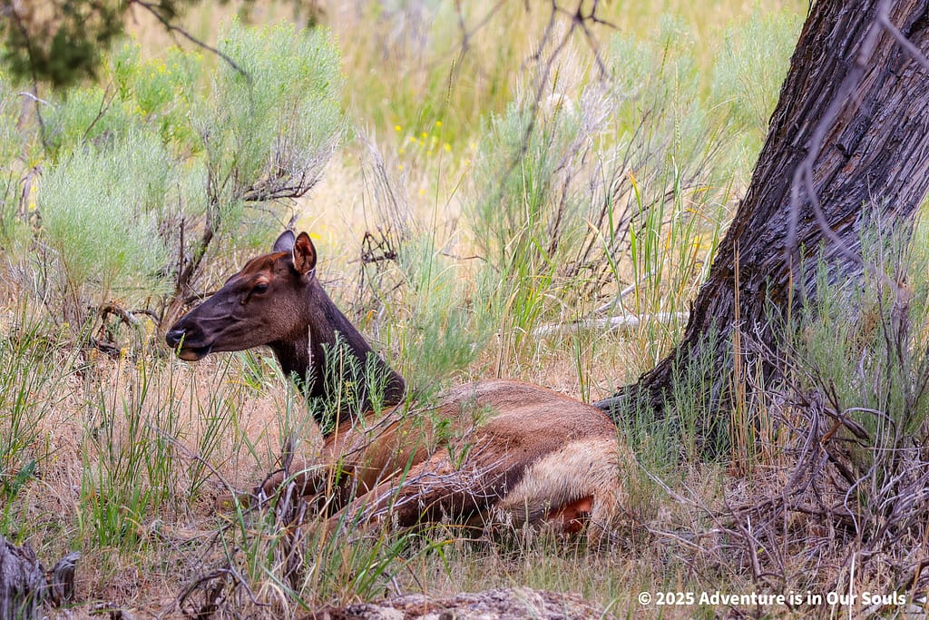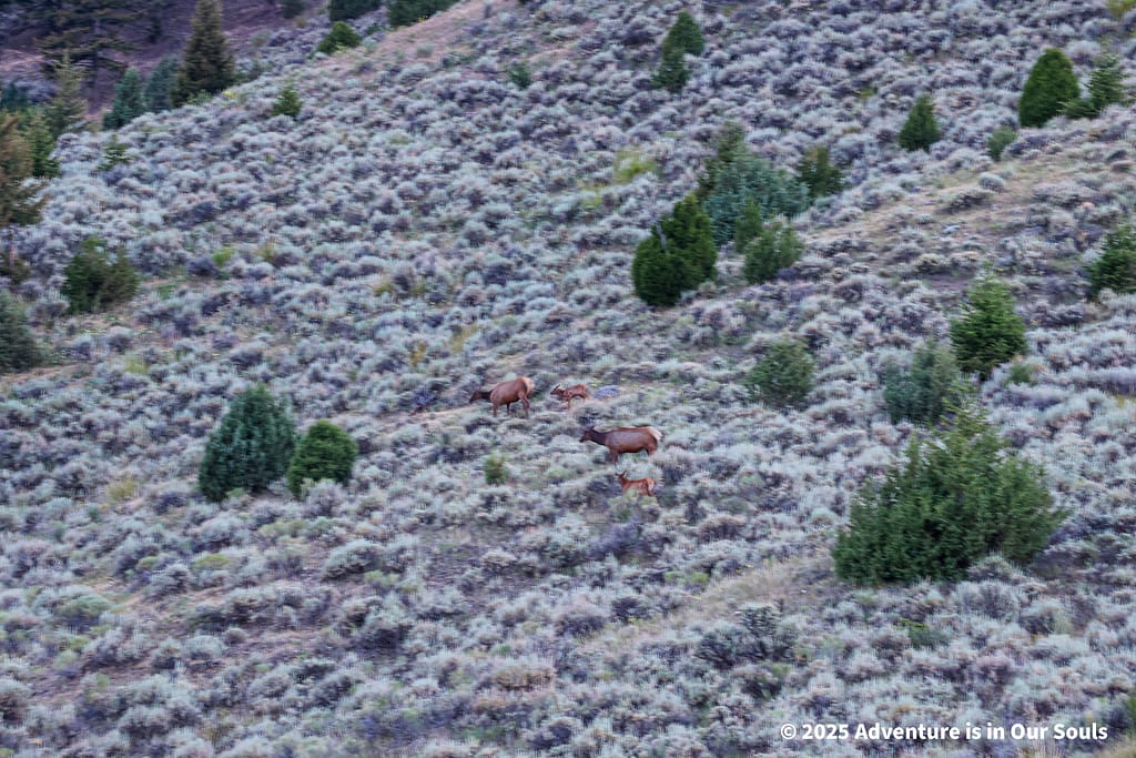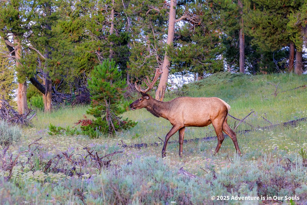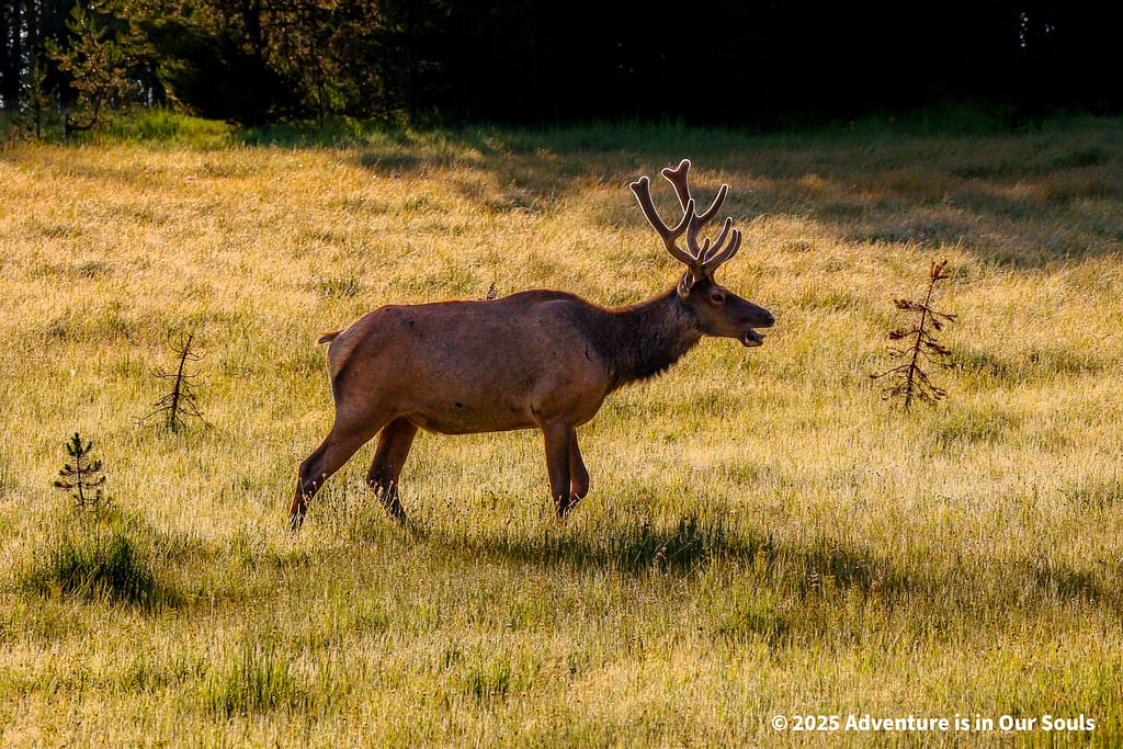As the sun began to rise, we packed up to drive towards Grand Teton National Park. We spotted several bull elk and black-tailed deer bucks grazing peacefully around the cabins and near the lake. They seemed completely unbothered by our presence, giving us a final, serene wildlife moment before the day ended.