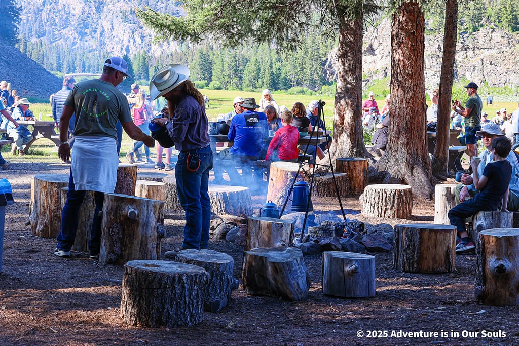 At Yancy’s Hole, we were greeted by a classic cowboy-style chuck wagon dinner under the open sky. Juicy steaks grilled over an open fire were served alongside hearty sides, and we enjoyed sipping cowboy coffee while sharing stories around the flames. As the sun began to set, the sky lit up with warm golden tones, creating a magical atmosphere.