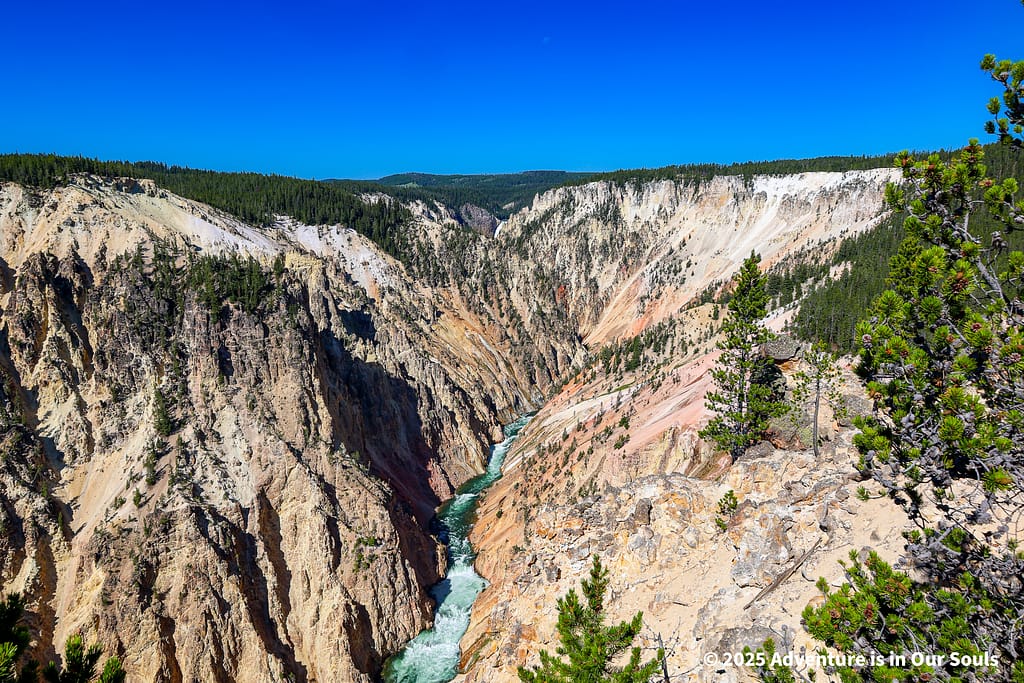 Across from Artist Point, Grand View provided a dramatic sense of the canyon’s depth, revealing layers of rhyolite and iron-stained cliffs that seemed almost sculpted.