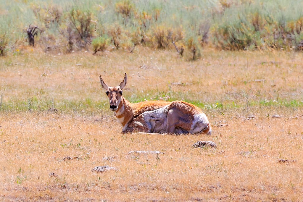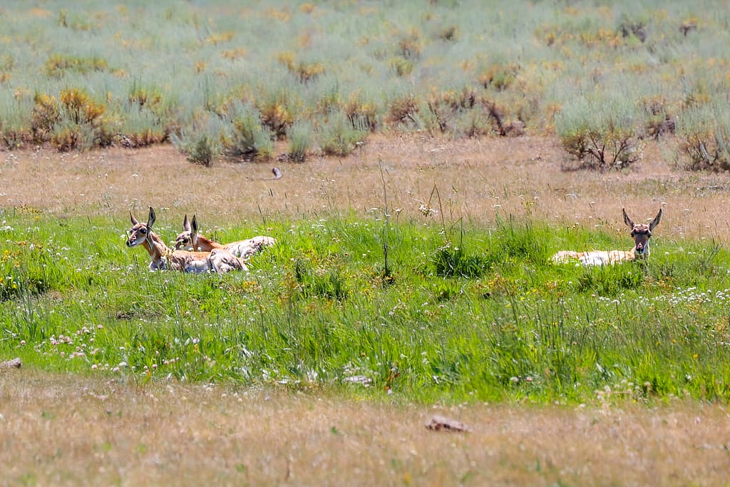 While driving slowly through the valley, we spotted a pronghorn mother and her three babies resting in the tall grass. The babies peeked shyly, their delicate white markings standing out against the golden grass. Watching them interact while staying close to their mother was a gentle reminder of Yellowstone’s rich biodiversity.